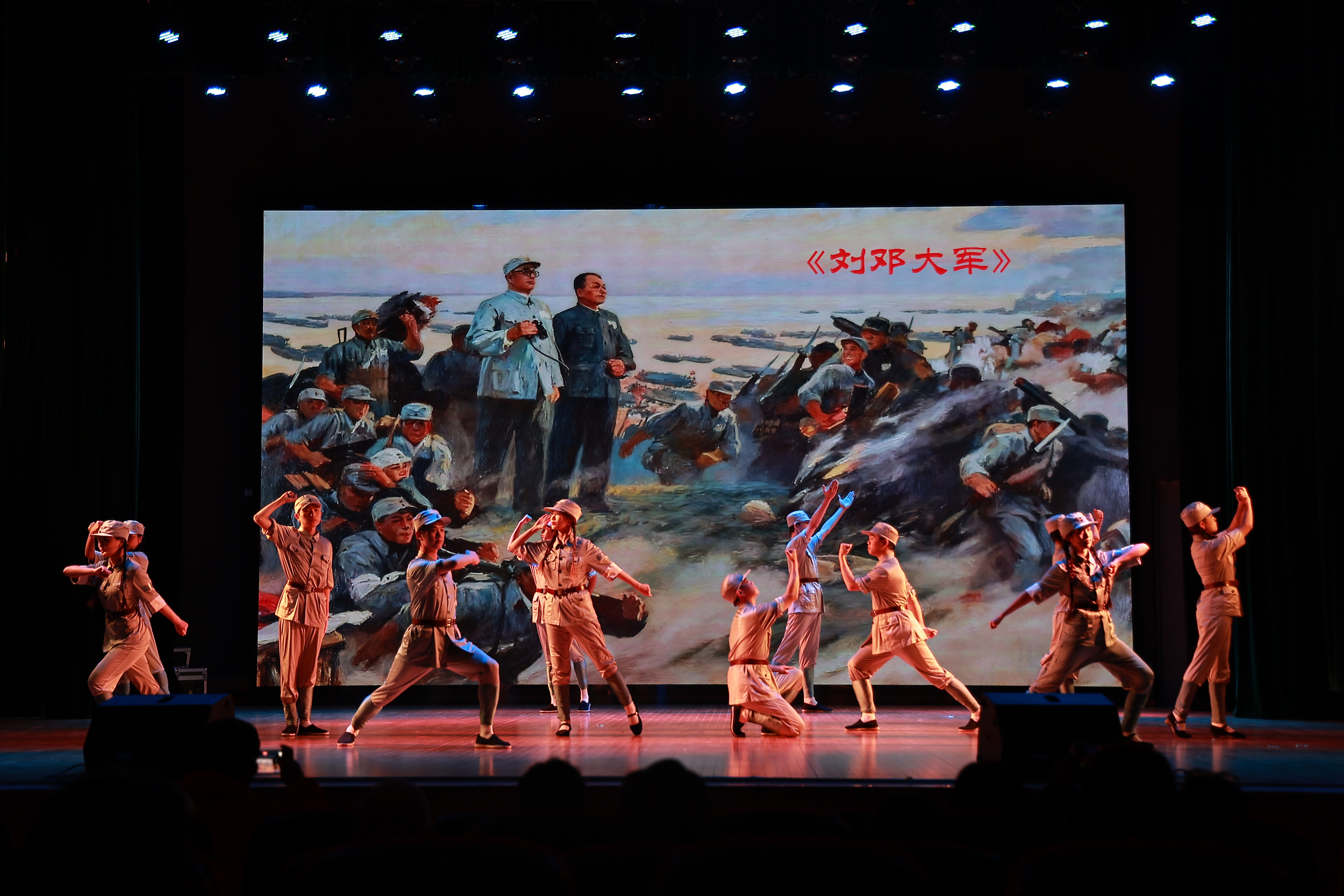 音乐党课以“红旗漫卷大别山”为主题,通过四个精心设计的篇章——“先驱播火,唤起工农跟党走”“不胜不休,苏区红军勇战斗”“孤悬敌后,抗日劲旅歼倭寇”“勇当前锋,千里跃进利剑飕”,运用《三大纪律八项注意》等9首经典红色歌曲,生动再现了大别山地区28年红旗不倒、22年革命武装斗争不间断的革命传奇。这种“以歌叙史、以乐化人”的方式,让思政教育焕发出更鲜活的生命力,通过音乐与历史的深度融合,带领观众从“听故事”到“入情境”,从“学知识”到“悟精神”,在艺术的浸润中深刻体悟大别山精神的核心内涵。