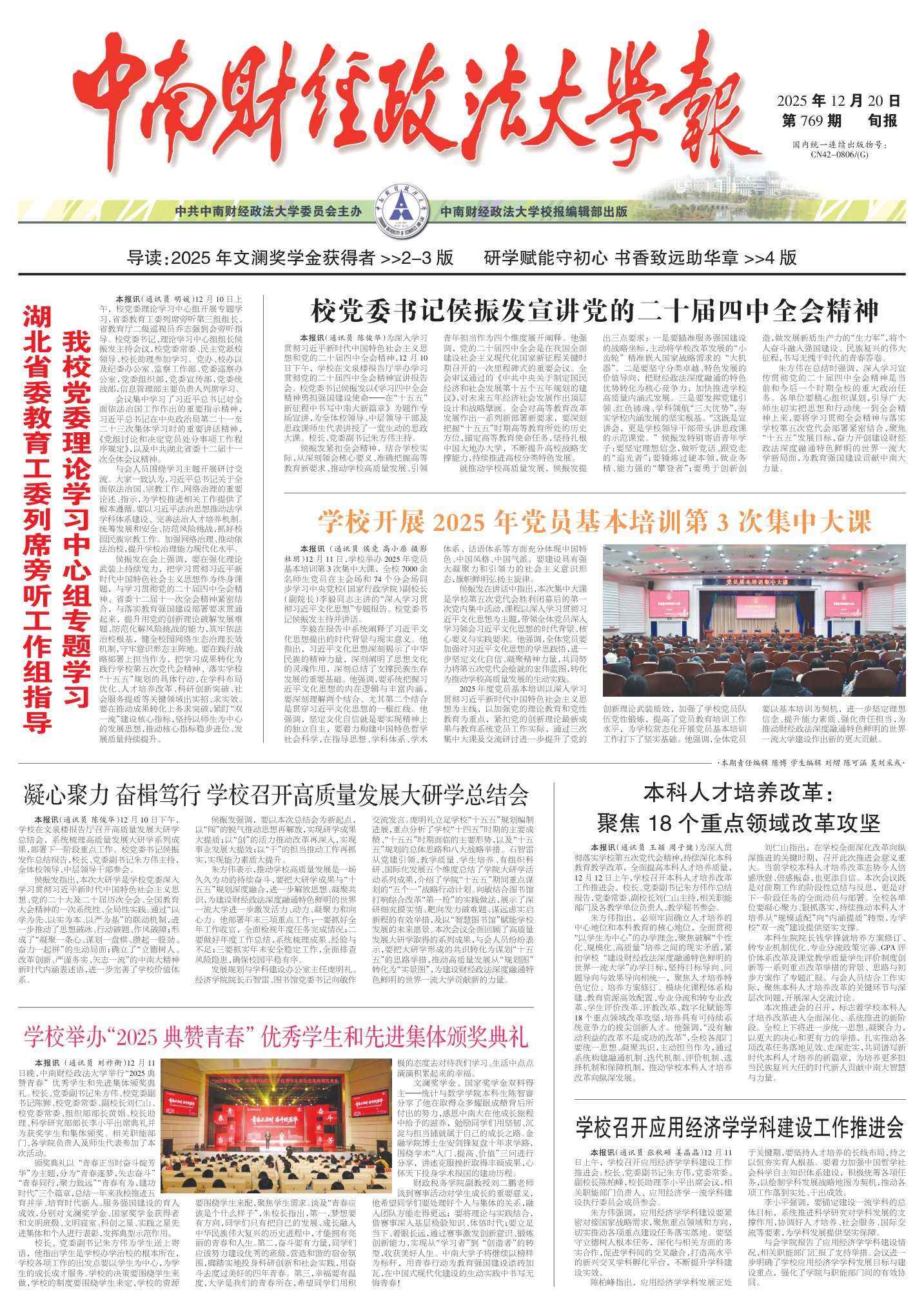 本报讯(通讯员陈俊华)为深入学习贯彻习近平新时代中国特色社会主义思想和党的二十届四中全会精神,12月10日下午,学校在文泉楼报告厅举办学习贯彻党的二十届四中全会精神宣讲报告...