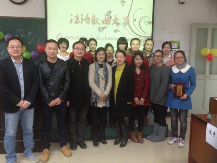 12月5日下午2点,由外国语学院法语专业教研室主办、法语协会承办的法语歌曲大赛在文波204拉开帷幕,为武汉的寒冷冬日增添了些许情趣。歌曲大赛旨在促进同学们学习法国文化,调节法语学习的节奏,同时展示法国文化的魅力。本次比赛由法语专业全体教师团队担纲比赛评委。