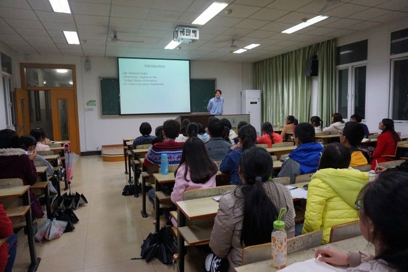 (通讯员沈谦报道)2015年11月19日晚,由外国语学院主办的“第二期西方文化大讲堂:外教系列讲座(三)“Credit Scoring in the United States” 在首义校区文润楼201教室如期开讲。此次主讲人为我院外籍教师Mr. Richard Sutter。该讲座吸引了很多来自全校各个学院热爱英语学习、对西方文化感兴趣的同学们。