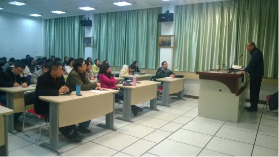 (通讯员:李梦葛)2015年11月23日晚6点半,由外国语学院举办的“《习近平谈治国理政》英译本翻译”的讲座在文波楼语音教室210顺利举行。此次讲座由孙望安先生主讲,由外国语学院副教授曾静主持,我院部分教师、研究生及本科生参加了此次讲座。孙先生丰富的人生阅历吸引了大量热爱英语、热爱翻译的同学们,现场气氛热烈。