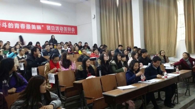 新闻网讯(通讯员 杨乐依)12月18日中午12点30分,外国语学院“奋斗的青春最美丽”主题团日活动答辩会于电教101举办。学办主任刘琪、团委书记徐庆祥出席了此次答辩会。