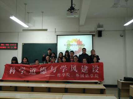 12月23日晚,由我院外语学院与哲学院联合举办的研究生科学道德与学风建设活动在文添楼101教室进行。此次活动由两院学术部联手举办,旨在开拓研究生视野,扩大同学们的学习范围,引导同学们遵守学术规范,坚守学术诚信,完善学术人格,维护学术尊严,摒弃学术中的不端行为。