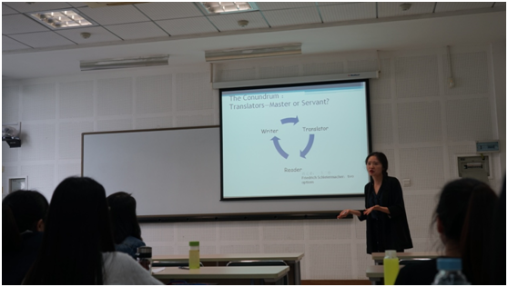 在整个工作坊的学习中,薛凌博士地道流畅的英语,自信悠然的讲解给大家留下了深刻的印象;美籍教师 Richard Sutter的幽默风趣也时常让同学们捧腹大笑。当然,在欣赏,崇拜和欢笑的同时,同学们认识到了译文质量的重要性,学到了更地道的表达,让大家受益良多。期待下一期笔译工作坊的开展!