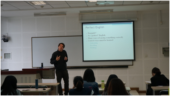 工作坊从模拟笔译任务出发,以“服从与对等”为主题,通过分析针对本次翻译实践的两组结果迥异的问卷数据,展现奈达以“读者反应论”为核心的对等理论的解释力和局限性。以此为出发点, Richard Sutter以分段讲解的方式逐字逐句分析典型的翻译案例:时态错误、单复数误用、及大小写混乱、搭配问题,以及句子结构等常见问题都得到一一指出,并提出了有效的修改方案。期间,薛凌博士也适时向外教提出问题,比如文化负载词的处理,术语的翻译等,并引导学生参与讨论,营造了一种轻松浓厚的学习氛围。最后,薛凌博士总结了本次工作坊的主要内容,鼓励同学们积极思考当代译者的历史使命,勇于尝试与探索传播中国文化的手段与策略。工作坊在同学们的积极提问和外教的耐心解答中圆满结束。