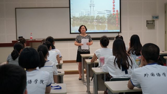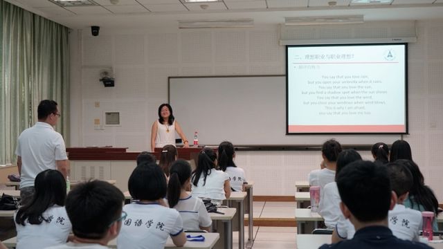 在主持人刘红卫老师对参加财大夏令营的学员们表示欢迎后,首先由冯曼副教授作了题为“翻译职业的现代化”的讲座,展现了现代翻译职业的发展和要求。讲座伊始,冯曼副教授展现了翻译的无穷魅力,同时讲解了译者的多重角色。接着,冯曼副教授讲解了现代化翻译的进程,对现代化翻译的要求、新趋势、翻译需求的改变、人才需求以及对译者的要求做了全面系统的介绍。最后,冯曼副教授从职业规划的角度提出了对大家的期望,希望大家培养作为译者的素养,不断提升自己的翻译能力,为提高我国文化软实力贡献自己的一份力量。