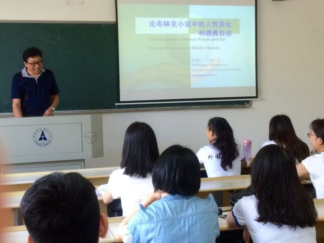(通讯员 段承颖)继昨天两场分别关于翻译和语言学的讲座后, 6月18号上午8:30分,蔡圣勤教授以《论布林克小说中人性异化和逃离自由》为题,为我们带来了一场文学盛宴,雷鸣院长、李颖老师、全体营员及夏令营志愿者聆听了这场讲座。