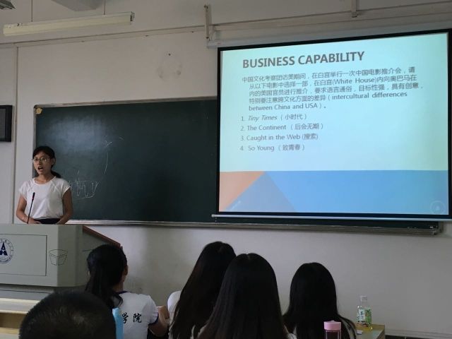 从第一轮胜出的同学,在第二轮中表现得更加从容自信,纷纷对如何克服文化休克发挥了自己独到的见解。他们流利的口语,地道的表达以及从容不迫的演讲者姿态深深折服了现场其他同学。比赛的第三轮是关于如何推销,内容涉及向白宫的官员介绍一部电影和向大家推销手机app微信。