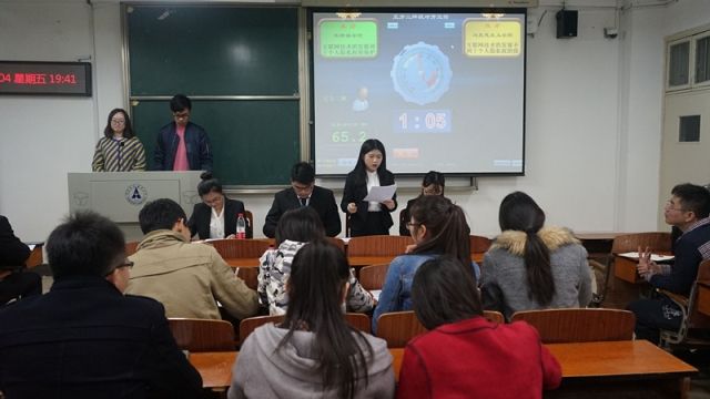 在接下来的第二轮比赛中,马克思主义学院与外国语学院就“互联网技术的发展是否有利于个人隐私权的保护”进行了激烈的对决。首先,我院作为正方进行了开篇陈词,在陈词中我院一辩选手提到“科学技术的本质是除弊增利,同样人的本性也是趋利弊害”,明确地阐述了正方的论点;而反方则以“互联网技术有漏洞”阐述了相反的观点,双方你来我往、侃侃而谈。