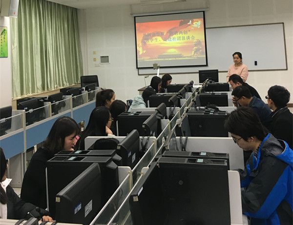 新闻网讯(通讯员于典)11月17日上午十点,外国语学院“两访两创”走进学生、走进社团恳谈会在文波语音303教室召开。外院党委副书记张文剑、学生工作办公室刘琪、饶丹雪老师出席,外国语学院学生代表、莎士比亚戏剧社、外语协会学生代表共计12人参加会议。