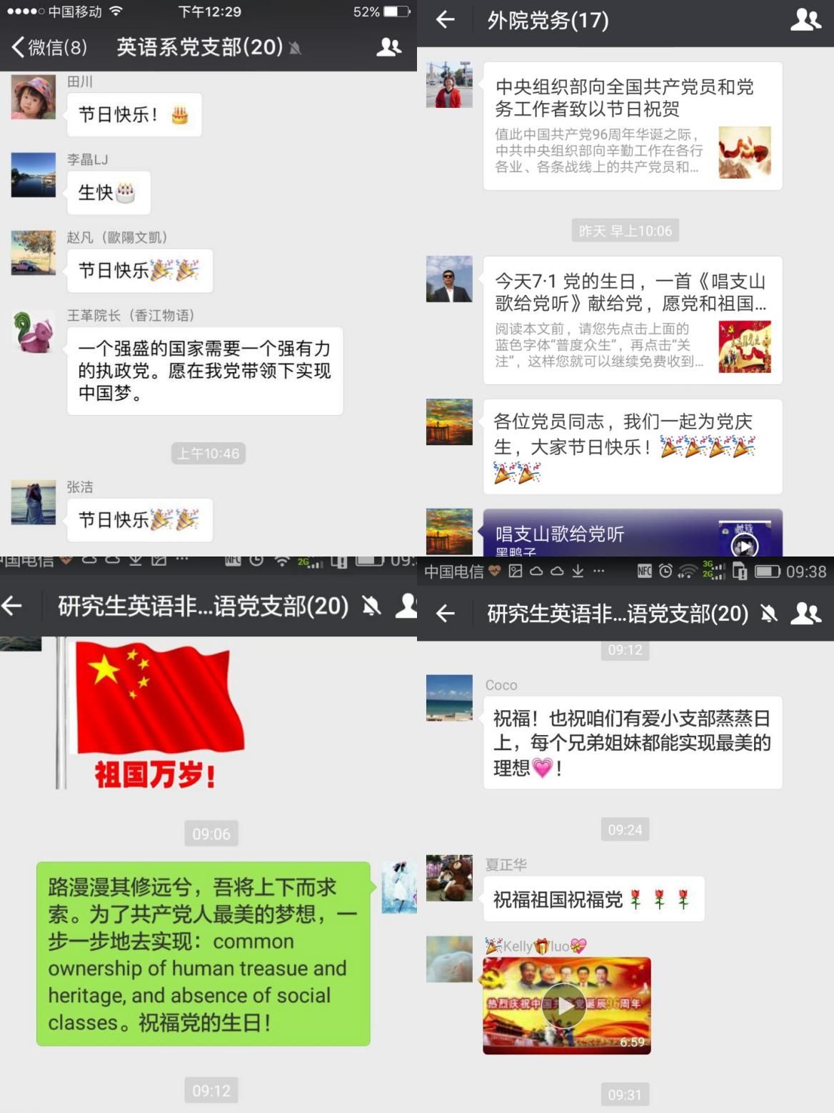 ——外国语学院通过微信群庆祝党的生日和香港回归二十周年