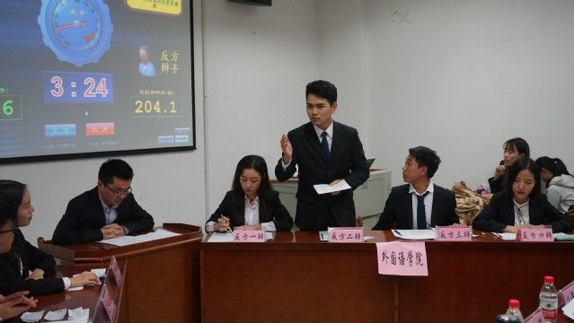 经过一个小时的激烈辩论,整场辩论赛在大家的掌声中圆满地落下帷幕。辩论赛结束后,现场评委法学院缪洋同学对双方辩手的出色表现给予了充分的肯定,随后指出双方代表队在辩论过程中出现的问题,并给出了针对性建议。最终评委一致商议决定,外国语学院代表队获得本场比赛的胜利,同时我院反方三辩伍岳同学荣获本场“最佳辩手”称号。