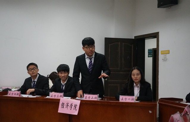整场辩论赛共分为开篇立论、驳论、质辩、自由辩论及最后总结陈词五个环节。首先,辩论赛主席分别简单介绍了双方辩手及应持观点,正方经济学院代表队的观点是:知识扶贫比经济扶贫更重要;反方外国语学院的观点是:经济扶贫比知识扶贫更重要。接着是双方辩手的自我介绍,随后比赛进入开篇立论环节。赛场气氛紧张热烈,信心十足的辩手与队友配合默契,充分表达了己方观点。双方你来我往、侃侃而言、引经据典、妙语连珠,场下观众激情澎湃,掌声连连响起。我院代表队首场比赛就表现出不俗的辩论水平,展现了强大的气场。