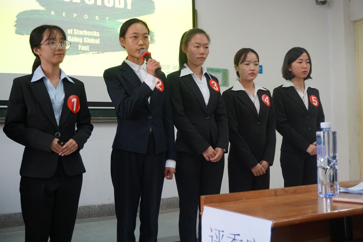 经过激烈的初赛选拔,共有30位来自各个学院各个年级的优秀选手突出重围,成功晋级复赛。复赛中,选手们5人一组,以Starbucks---Going Global Fast为主题,借助PPT进行案例分析,评委根据选手表现讨论并评分,个人成绩排名前十名的选手将晋级决赛。