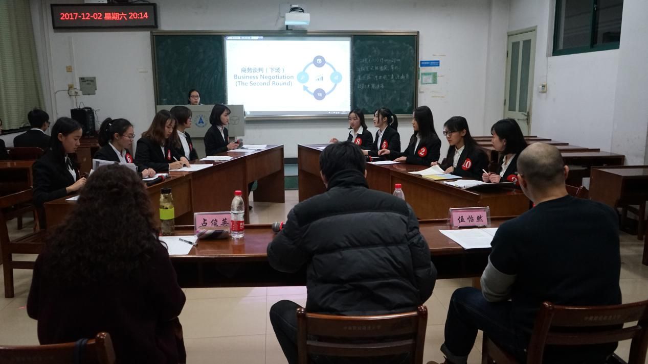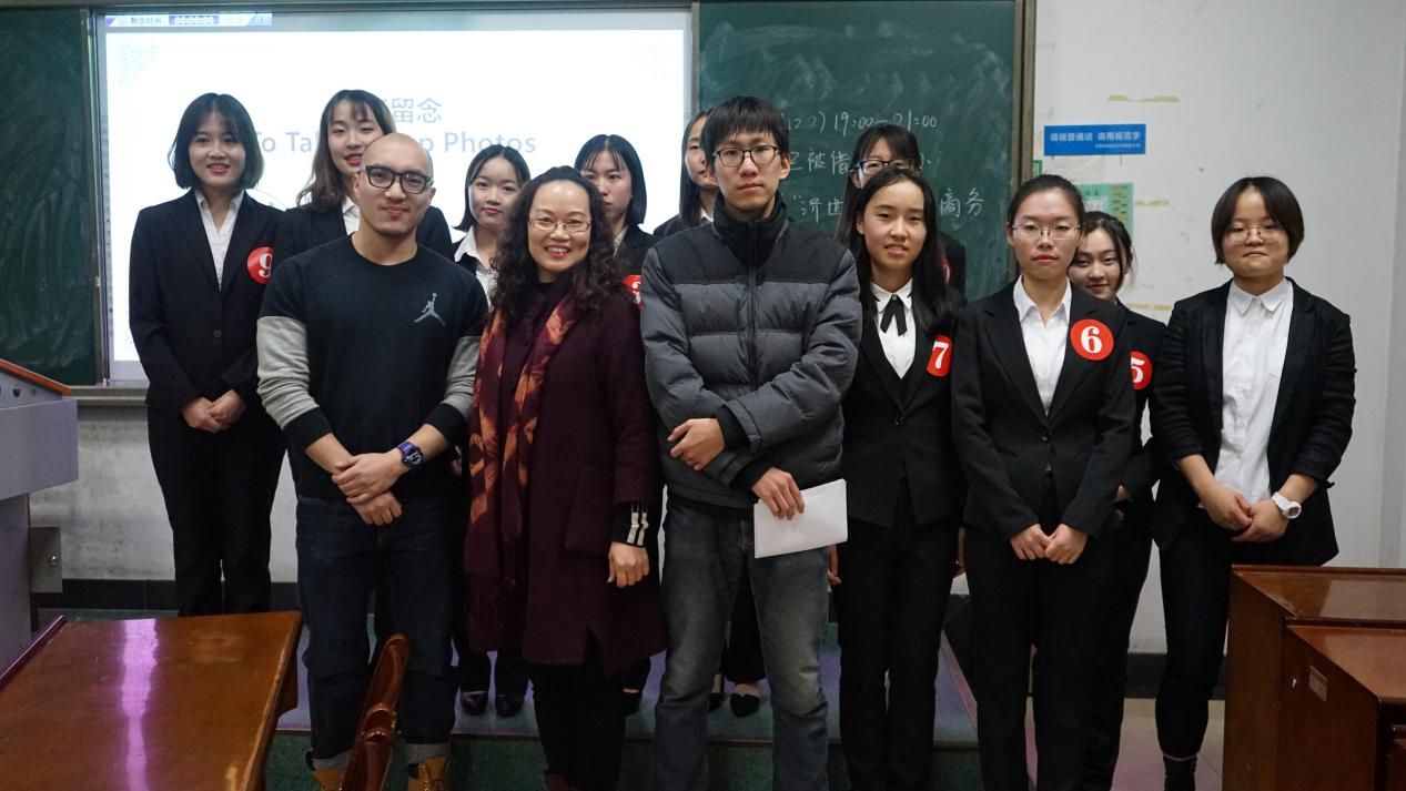 (新闻网讯 通讯员 刘水娟 摄影 冯小璇)2017年12月2日晚上7点,第三届“济世杯”英语商务技能大赛决赛在文波楼104教室举行。本次比赛由外院学术部承办,占俊英、李中正、伍怡然三位老师出席并担任此次比赛的评委。