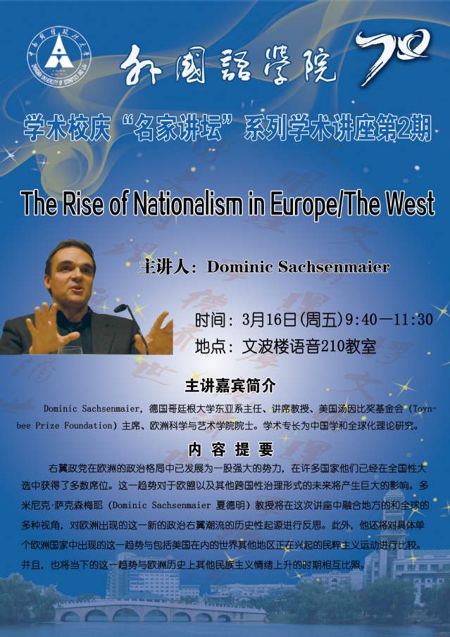 讲座预告:Dominic Sachsenmaier"The Rise of Nationalism in Europe/The West"