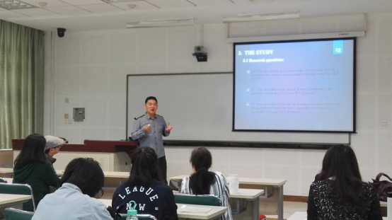 4月26日的学术讲座中,蔡博士首先结合文献提出一个编码框架以捕捉EMI写作任务的主要特征,并运用香港某大学两个EMI项目(创意艺术和环境科学)的写作任务数据对该框架进行验证。研究结果表明: 1)这些写作任务可分为三类:反应/批判型任务, 议论型任务, 描述型任务; 2)创意艺术专业主要倾向于使用反应/批判型写作任务, 环境科学专业主要倾向于议论型写作任务, 并且两个专业都倾向于使用描述性写作任务作为任务辅助; 3) 在高级学习阶段(3年级和4年级),各专业主导型的写作任务逐渐减少, 而辅助型任务逐渐增多。蔡博士最后讨论了写作任务编码框架对英语学习者论文写作研究与教学的重要意义。