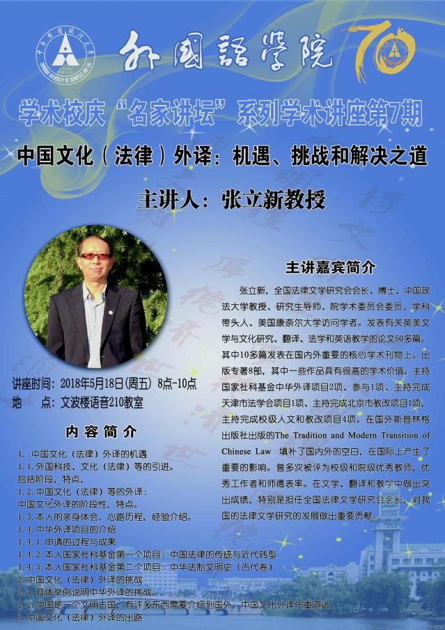 讲座预告:中国文化(法律)外译:机遇、挑战和解决之道