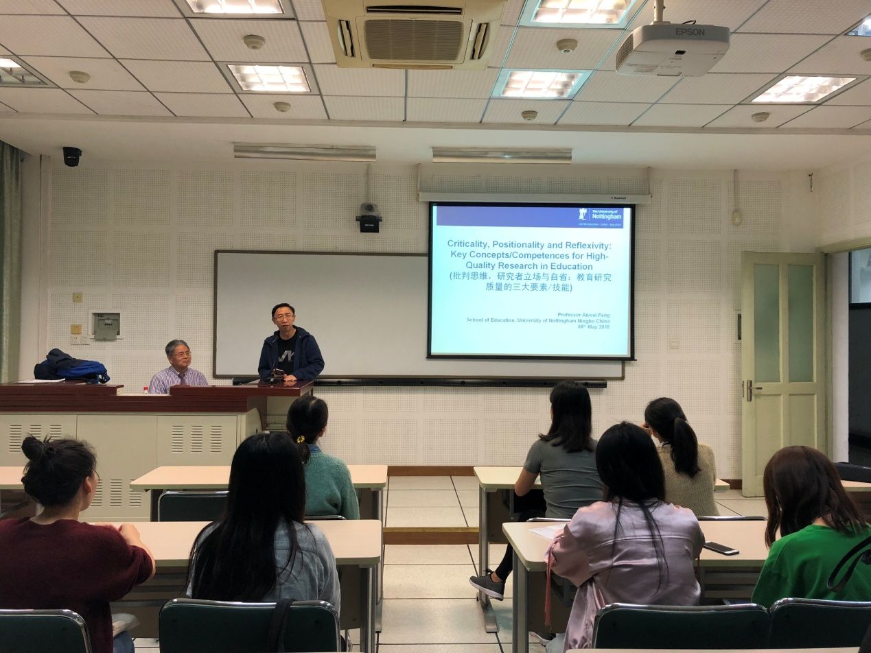 2018年5月8日下午4:00,我院学术校庆“名家讲坛”第五场学术讲座在文波楼语音210教室举行。宁波诺丁汉大学教育学院前院长,教育学院研究主任冯安伟教授做客米兰电竞·(中国区)外国语学院,开展了题为“批判思维,研究者立场与自省:教育研究质量的三大要素”的学术讲座。讲座由外国语学院院长王革教授主持,学院教师以及研究生一起聆听了本次讲座,并进行了积极的交流互动。