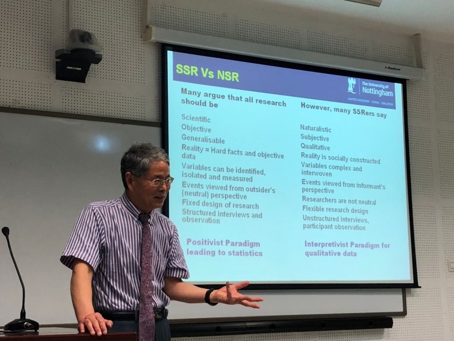 冯安伟教授通过对比社会科学研究与自然科学研究,指出社会科学研究重解读,社会科学研究者通过解读,可以更加深入地探析现象背后的机理。由此,冯教授认为一个好的研究者要充分认识到社会科学研究的复杂性,在掌握必要的研究技巧与研究方法的同时,还要具备批判性思维,明确自身立场,并且要不断自省。随后,冯教授分别就批判性思维,研究者立场以及自省的定义、重要性以及如何实施,结合案例进行了详细阐述。他指出(1)批判性思维,是一种贯穿整个研究过程的核心素养,它要求研究者要批判性地看待知识,在现有的基础上对知识进行概括整合,形成自己的认识,并采取相应的行动;(2)研究者自身的立场决定研究者将如何处理自身引起的霍桑效应,这会影响其对于研究现象的观察以及对结果的解读;(3)研究者在整个研究过程中要不断自省。通过撰写研究者日志、进行现场观察以及写反思日记等方式对问题进行记录。要充分考虑现实背景,力求从多角度全方位解读研究结果,从而增加数据的信度和效度。最后,冯教授对批判性思维、研究者立场以及自省的重要性进行了概括和总结。