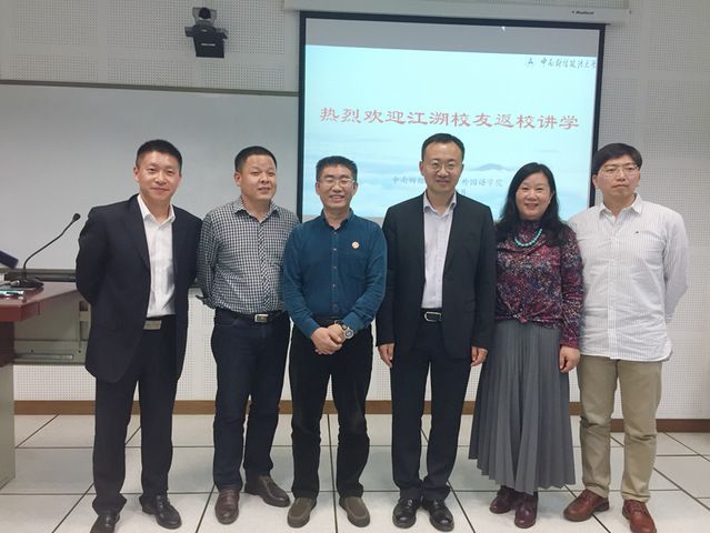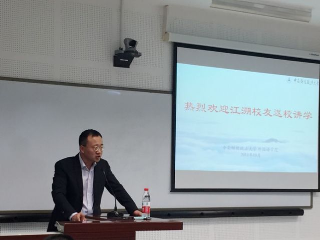 (通讯员朱雯萱)2018年10月27日晚,我院在文波楼语音210教室举行了外国语学院学术校庆的第十六讲,主讲人为北京大学法学院副教授、博士生导师、我校外国语学院1997级法律英语专业毕业生江溯校友,主题为“法律翻译与法学研究”。本次讲座由学院副院长胡惮教授主持,我院部分教授、青年教师、研究生、本科生参与了本次讲座。