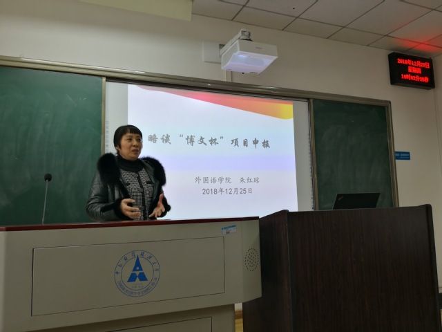 12月27日上午10点,我院俄语教研室主任朱红琼教授在首义校区文润楼210教室为2018级学生作了题为“略谈博文杯项目申报”的主题讲座,辅导员饶丹雪老师主持了本场讲座。