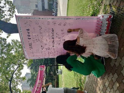 部分外国语学院班级心理委员及其他班委志愿参与了这次活动的组织。为吸过往同学兴趣,组织人员特增加“写心愿爆气球”项目,让同学们在心愿墙上留下心愿后,在组织人员打好的气球上写出最简单的愿望,比如不少女生所期望的“瘦”,然后自己踩爆。这一“爆心愿”互动项目的增加以及组织人员的宣传取得了明显效果。不少过路同学被吸引而来,纷纷写下心愿。某名体验爆气球的女生在气球上写下:面试顺利通过,然后毫不犹豫踩向气球。也有两名相携而来的女生将心愿写在一个气球上,在欢笑中挤爆了气球。