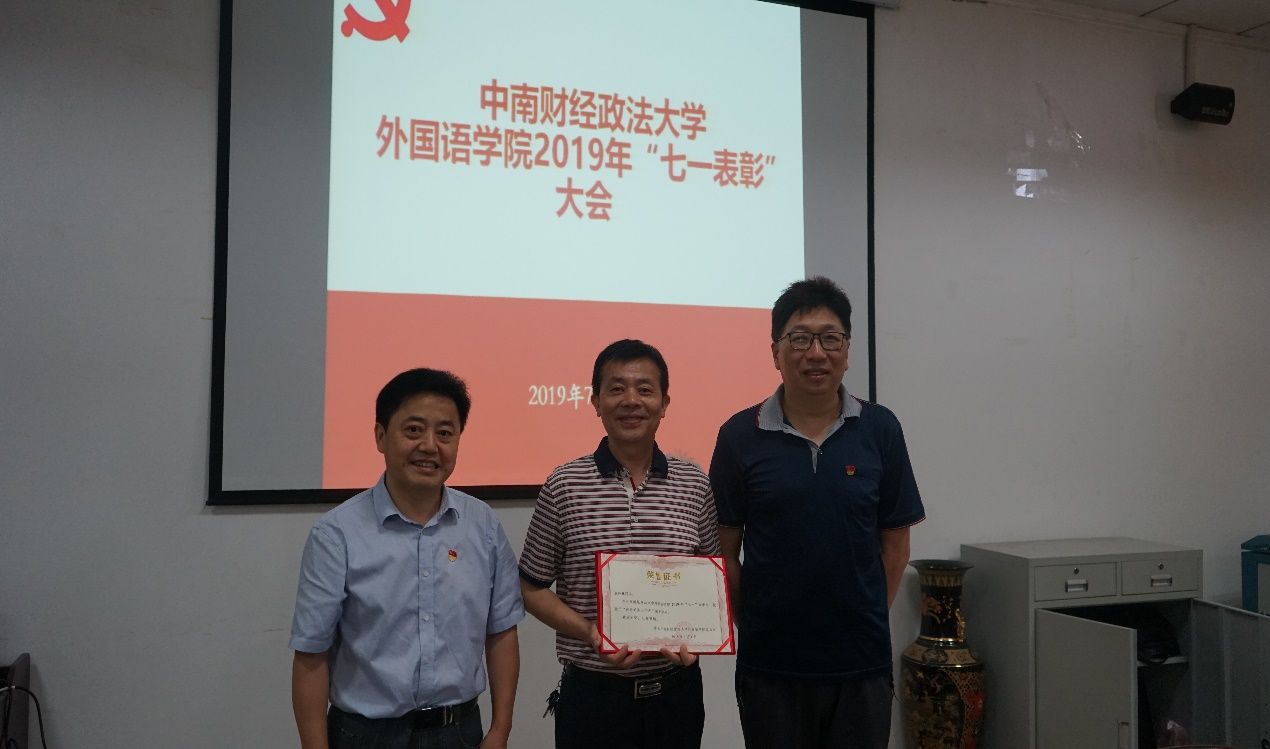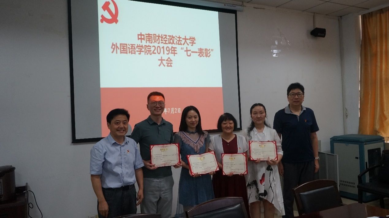 会议伊始,院党委书记余启军代表学院党委宣读表彰决定。授予外国语学院大学英语四五六党支部、外国语学院英语系和应用英语系党支部2个教师党支部,外国语学院2018级研究生党支部、外国语学院本科生党支部2个学生党支部“先进基层党组织”荣誉称号;授予冯兵、关绮、马书东、戴斐、周敏、张诗萌6名同志“优秀共产党员”荣誉称号;授予袁园、关绮、李宏顺、戴斐4名党支部书记“优秀‘双带头人’教师党支部书记”荣誉称号;授予袁经林同志“优秀党务工作者”荣誉称号。学院党委书记余启军、院长蔡圣勤先后为受到表彰的先进集体代表和个人颁发了荣誉证书和奖品。