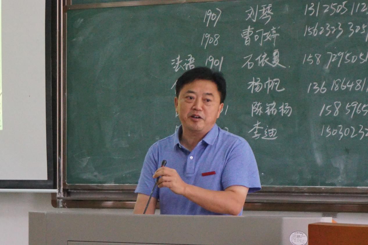 下午15时,外国语学院2019级新生家长见面会在首义校区文津楼401教室举行。外国语学院院长蔡圣勤教授、院党委书记余启军教授、副书记伍施乐老师以及院学生办公室全体辅导员出席此次见面会。