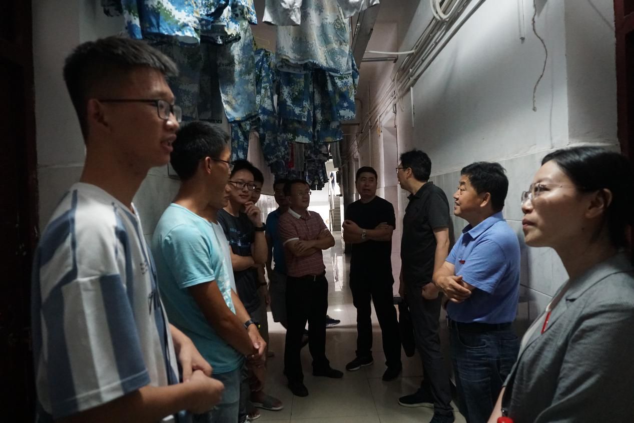 家长见面会结束后,院领导一行来到新生寝室与新生及学生家长们进行热烈地交流。蔡圣勤院长和余启军书记亲切地问候了新生们的住宿环境和学业生活,叮嘱同学们注意自身及财产安全,同时希望他们能尽快适应环境,迎接即将到来的军训。