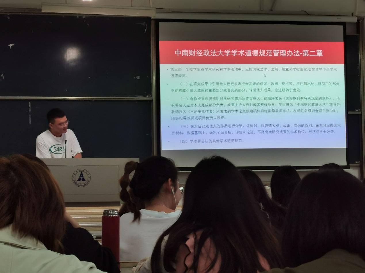 诚信是中华民族的优良传统,是我国五千年文明的历史沉淀,它是一种品行、一种道义、一种责任,不仅彰显着一个人内心的自重与尊严,也塑造着一个时代的灵魂与精神。作为肩负中国梦的新时代青年学子,在求学之路上更应当认真领悟贯彻诚信原则,砥砺德行,升华人格。主持人还通过“翟天临学术不端行为”等相关案例,向我们传达了研究生阶段学术研究的重要性以及学校对研究生学位论文和学术规范的要求,要求同学们严以律己,严格恪守学术规范准则,拒绝学术不端行为。
