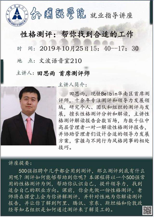 就业指导讲座预告:性格测评:帮你找到合适的工作