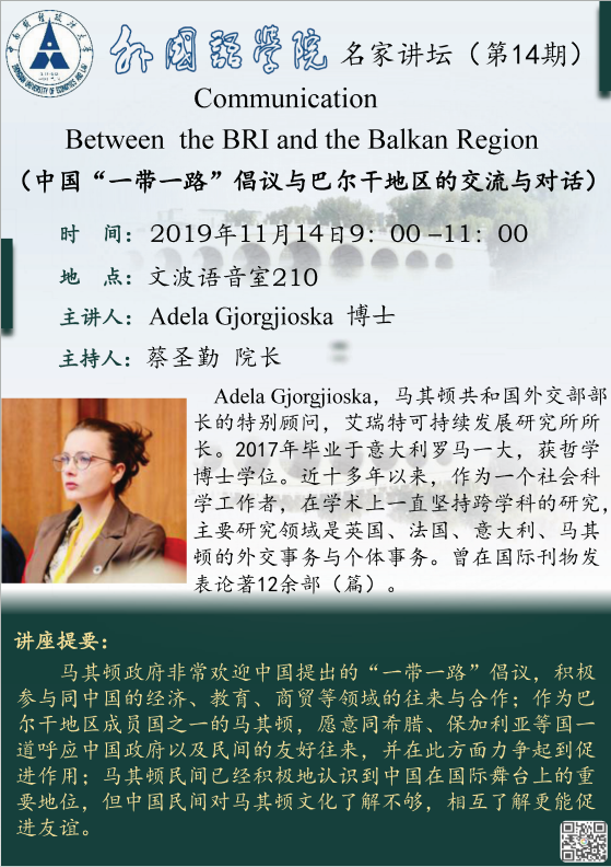 讲座预告:中国“一带一路”倡议与巴尔干地区的交流与对话