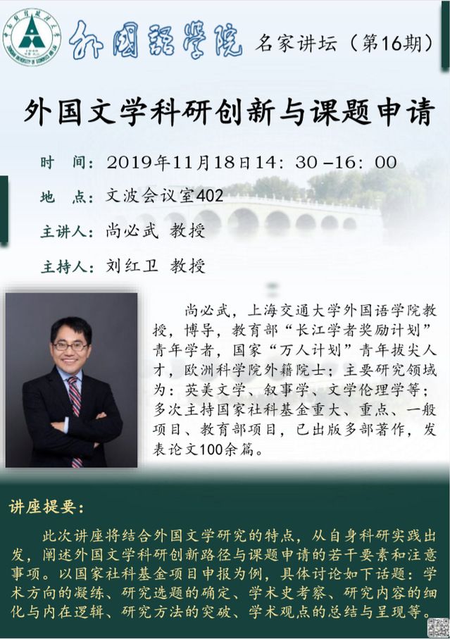 讲座预告:外国文学科研创新与课题申请