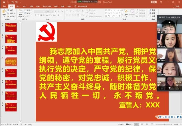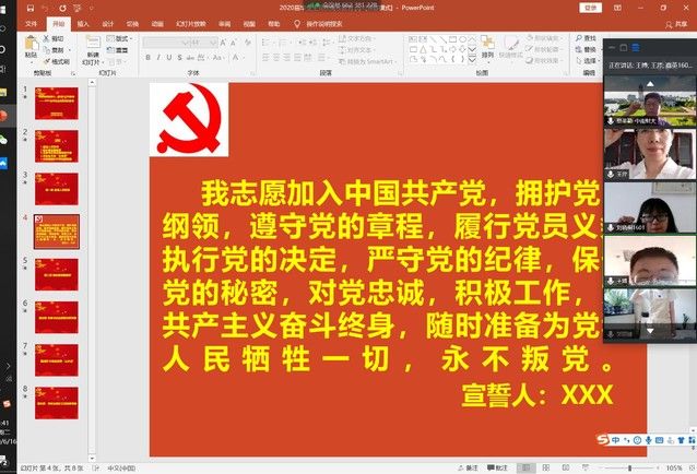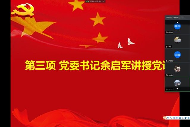 会议开始党委副书记余向阳带领全体参会党员重温入党誓词。全体党员开启视频面向党旗,庄严地举起右拳,宣读誓词“我志愿加入中国共产党,拥护党的纲领,遵守党的章程,履行党员义务…。”一句句誓词,让党员铭记党的性质与宗旨,激荡内心情怀。