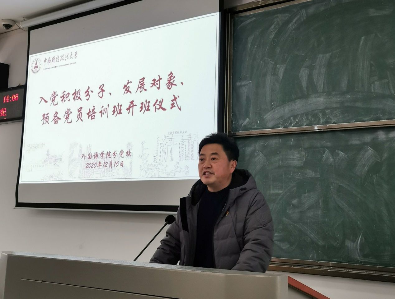 正式授课之前,学院党务秘书陈长军老师为各位同学介绍了本次课程安排,强调了党校学习的严肃性和纪律性,并对大家提出了两点希望:一是入党是一个漫长的、双向选择的过程,望大家始终认真对待、不忘初心、牢记使命;二是要以优秀党员为模范,努力成为更好的自己,做到学有所成、才有所长。