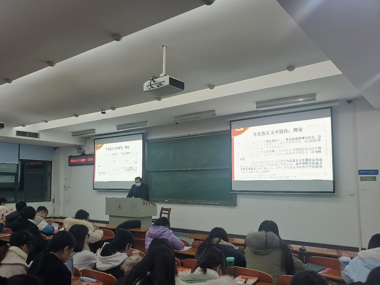 12月14日晚上,学院小语种党支部书记马书东老师以习近平新时代中国特色社会主义思想为主题为大家讲授党课,马老师讲到习近平新时代中国特色社会主义思想是马克思主义中国化最新成果,是党和人民实践经验和集体智慧的结晶,是中国特色社会主义理论体系的重要组成部分,是全党全国人民为实现中华民族伟大复兴而奋斗的行动指南。希望同学们作为新时代青年,一定要明确:只有社会主义,只有中国特色社会主义才能发展中国,要坚定信心,乘势而上,为祖国富强奉献出自己的一份力量。
