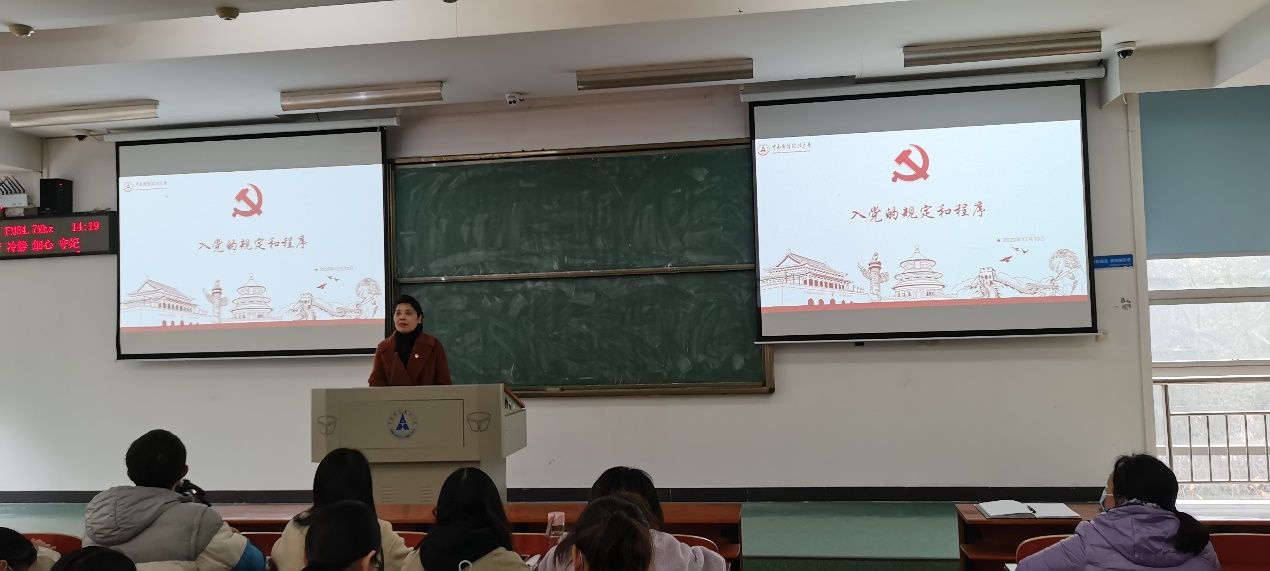 随后,校党委组织部组织员李明老师以“入党的规定和程序”为主题为本次学员讲授第一节党课,李老师耐心讲解了入党要求和程序,在漫长的入党之路上,无论是入党积极分子、发展对象还是预备党员都应该清楚知道成为一名合格党员所需要的条件,由此才可以明确发展目标,并不断完善自我。大学生作为发展党员的重要对象,不仅要在素质上、能力上合格,还要在政治上、思想上达标。了解入党要求和程序,为新青年自我优化的高度和质量提供了丈量之法。