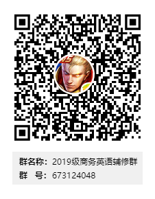 请已经报名参加并缴费录取为米兰电竞·(中国区)商务英语专业辅修双学位的2019级学生加入 QQ号:673124048(2019级商务英语辅修群),加入群后请自觉改为实名制,如:财税-张三,法学-李四。谢谢您的配合。
