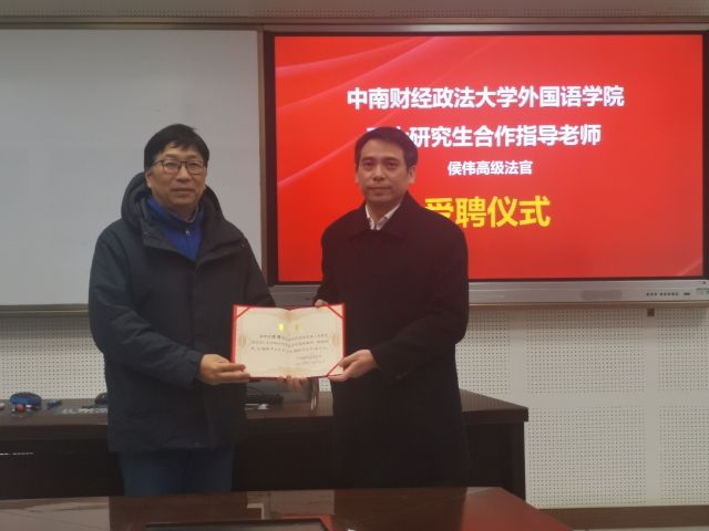 聘任仪式上,蔡圣勤院长为武汉海事法院侯伟高级法官颁发了合作指导教师聘书,胡惮副院长和阮全友副院长为国浩律师(上海)事务所合伙人、中国国际贸易促进委员会和中国国际商会调解中心调解员田中伟律师颁发了合作指导教师聘书。
