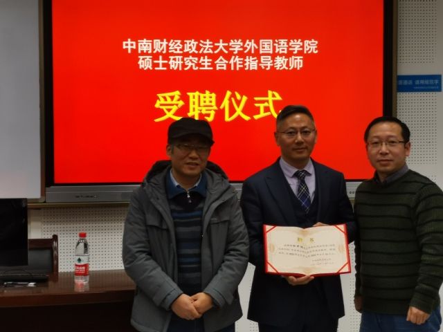 院网讯(通讯员 张冉)1月5日下午,学院在文波楼同传会议室举行了MTI翻译专业硕士研究生合作指导教师聘任仪式。学院院长蔡圣勤教授、副院长胡惮教授、副院长阮全友教授、院长助理孙世权副教授和MTI导师组组长朱勇副教授出席聘任仪式。