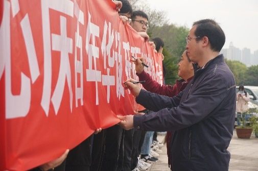 国旗下讲话结束后,全体奏唱校歌。随后,全体师生签字祝福建党100周年华诞,纷纷在横幅上签下自己的姓名和祝福。“不忘初心庆百年华诞,砥砺前行谱时代新篇”,成长在新时代的学子,正见证着中国梦一步步的实现,正从这里走向“人民需要的地方”。