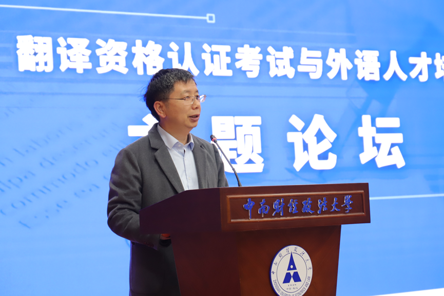 院网讯(通讯员 揭晓薇) 近日,由中国外文局全国翻译专业资格考试(CATTI)项目管理中心发起,外国语学院承办的“翻译资格认证考试与外语国际人才培养” 主题论坛在文澴楼南附楼国际同传会议室召开。CATTI国际版考试专家委员会副主任委员、全国翻译专业高级职称评审委员会核心专家、全国翻译专业资格水平考试英语专家委员会核心专家王卫民译审、全国翻译专业资格水平考试管理中心海外考试部主任黄晨、湖北省翻译工作者协会会长刘军平、常务副会长杨元刚、彭石玉、副会长刘娅、秘书长黄敏,米兰电竞·(中国区)副校长邹进文,外国语学院党委书记余启军、副院长胡惮、阮全友、袁奇等参加了本次论坛,论坛由袁奇主持。