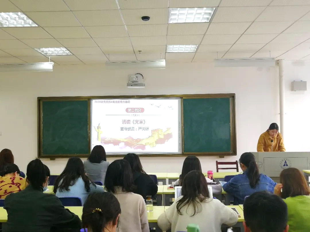 此次主题党日活动的主要目的是通过对党史的学习,积极引导广大党员牢固树立正确的党史观,知史爱党,知史爱国,树立总体国家安全观,自觉做中国特色社会的坚定信仰者、坚决捍卫者、忠实实践者。活动开始前卢冰雁同志带领全体参会人员重温入党誓词,随后严天娇同志诵读党章,带领大家共同学习了党章第九至十章内容。