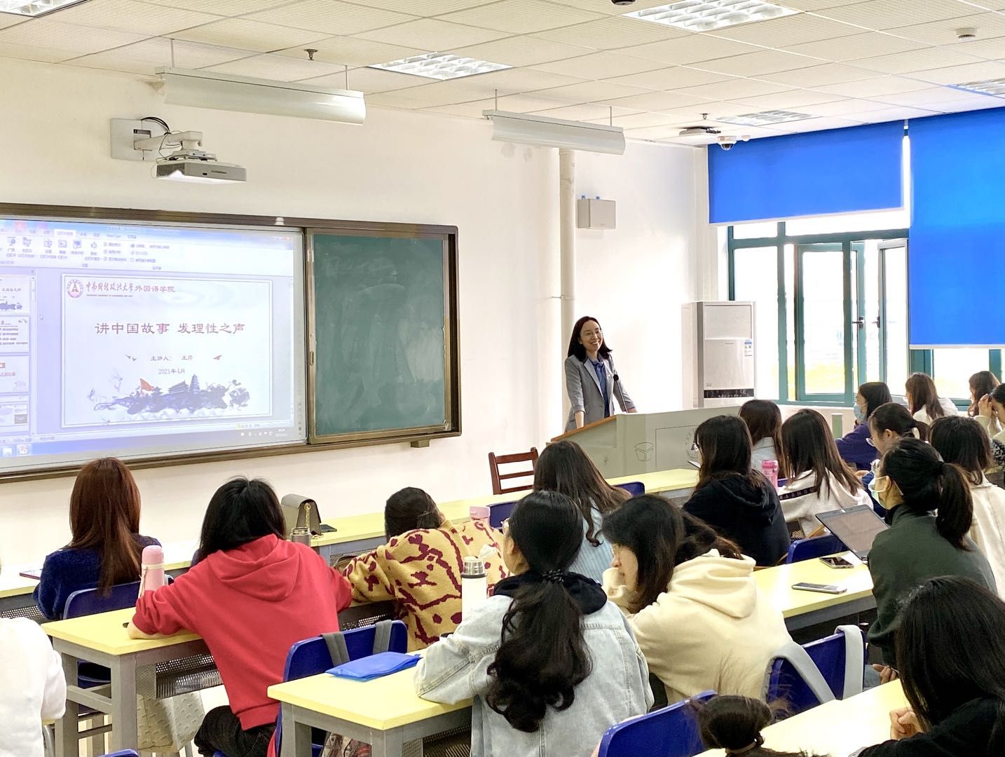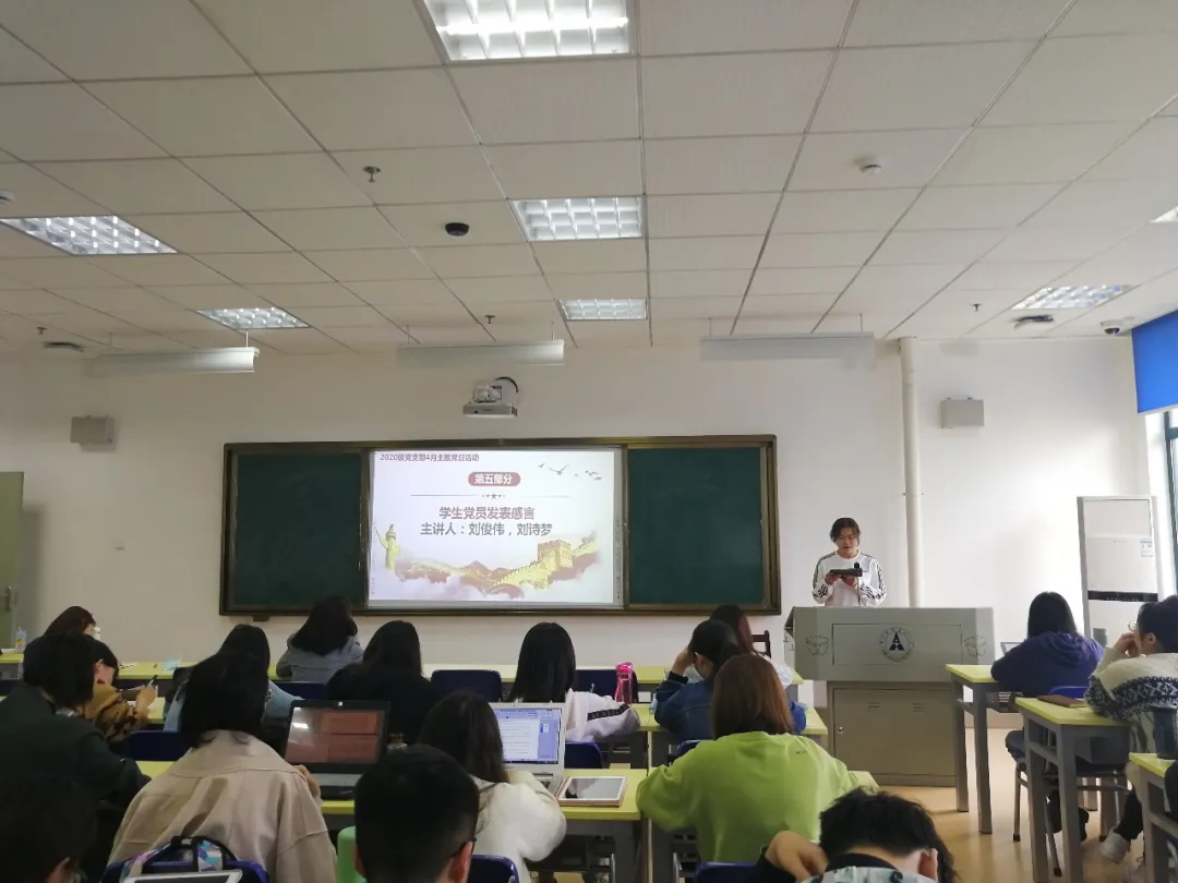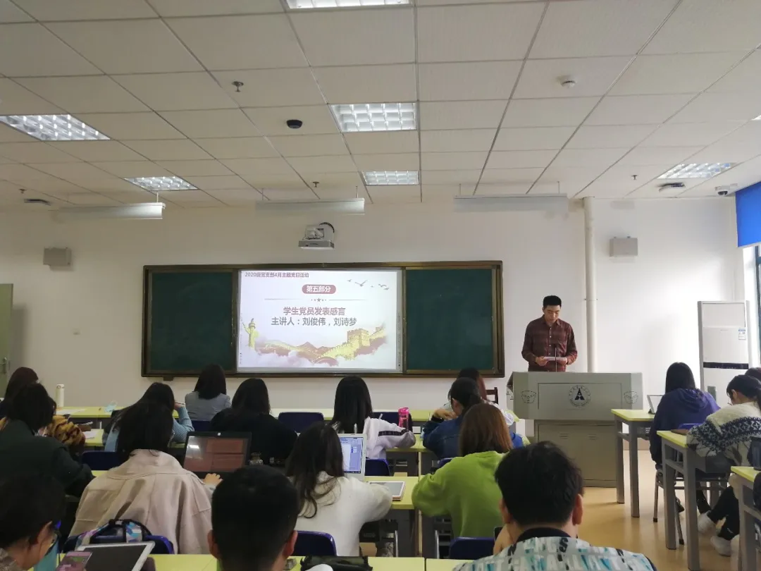 院网讯(通讯员 邓泽锋 摄影 刘牧月)2021年4月22日下午,外国语学院2020级研究生党支部在文澴楼515教室开展了题为“学史增信跟党走,百年荣光耀初心”的主题党日活动。院党委副书记王芹老师出席本次活动并以“讲中国故事,发理性之声”为主题讲授党课,活动由2020级研究生党支部书记卢冰雁主持,支部全体党员、预备党员、入党积极分子参加学习活动。