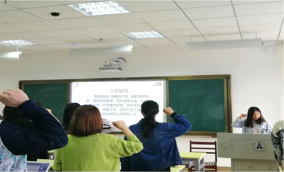 图为支部书记卢冰雁同志带领支部成员宣誓