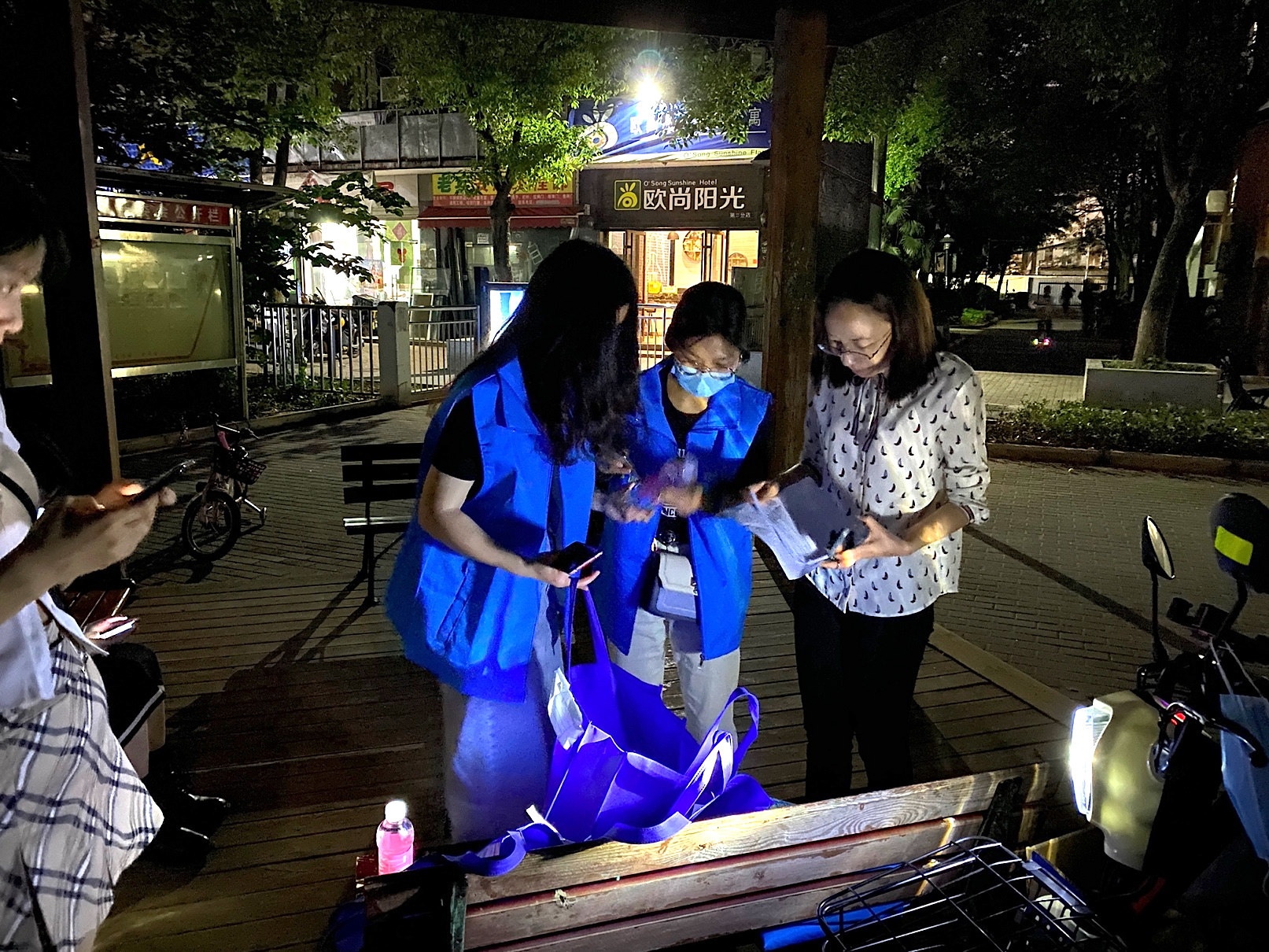 五月的武汉,骄阳似火。7日傍晚6时许,15名研究生党员和入党积极分子在文波楼下集合完毕,聆听王书记的亲切关怀和嘱咐,随后在老师的带领下一同前往清水源社区东临外庐小区开展活动。社区刘润佳主任和网格员同志早早等候在现场,为同学们准备好了带有防诈骗标语的背心和宣传单页,而后刘主任为同学介绍了志愿活动的主要内容和注意事项。在简单的合影留念后,研究生同学们迅速分组前往小区各楼栋,挨家挨户敲门宣传防诈骗知识。大约两小时后,各组志愿者陆续完成任务返回集合点,并将本组的情况一一汇报。在研究生党员和入党积极分子的努力下,当日的防诈骗宣传活动大约覆盖300余户家庭,受到了社区领导和同志们的肯定,获得了很好的宣传效果。