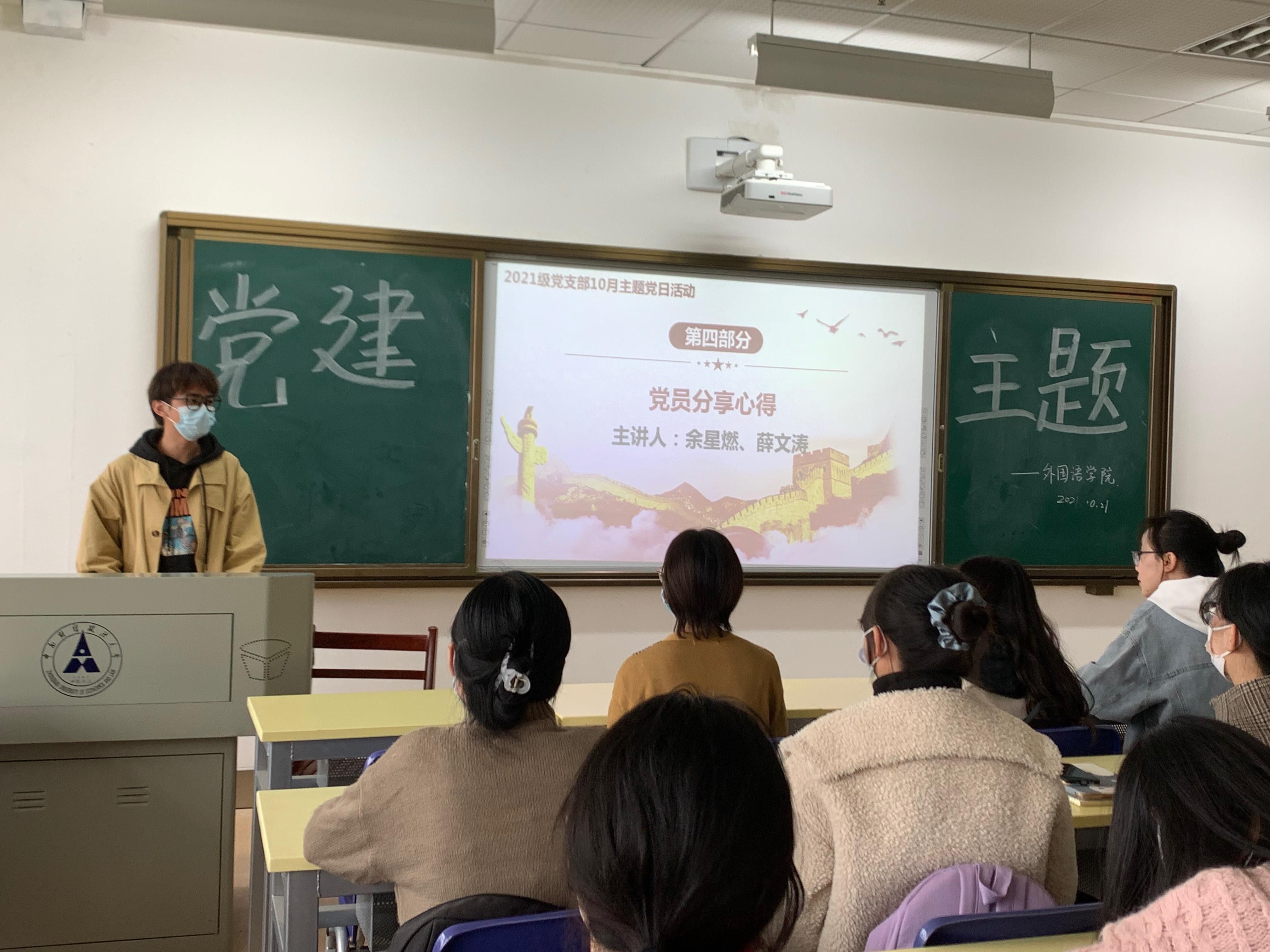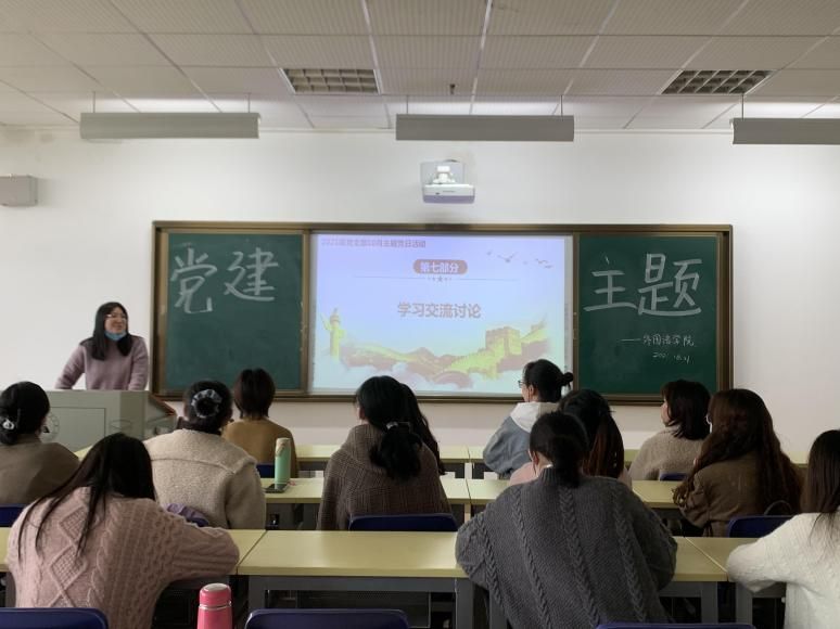 院网讯(通讯员 刘睿)为提高我院研究生党支部党员综合素质,加强对中国共产党初心使命的认识,外国语学院2021级党支部于10月21日15:00,在文澴楼525教室组织召开了“永远跟党走,共圆复兴梦”主题党日活动。