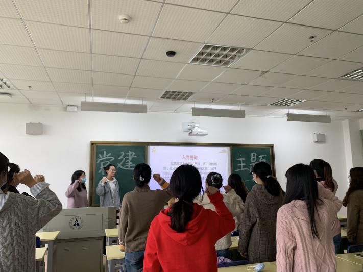 活动开始,学硕党支部书记孙昕昕带领支部全体党员重温了入党誓词。在全体党员慷慨激昂地宣誓下,再次强化了支部党员们“在思想上入党、在行动上入党”的思想觉悟。