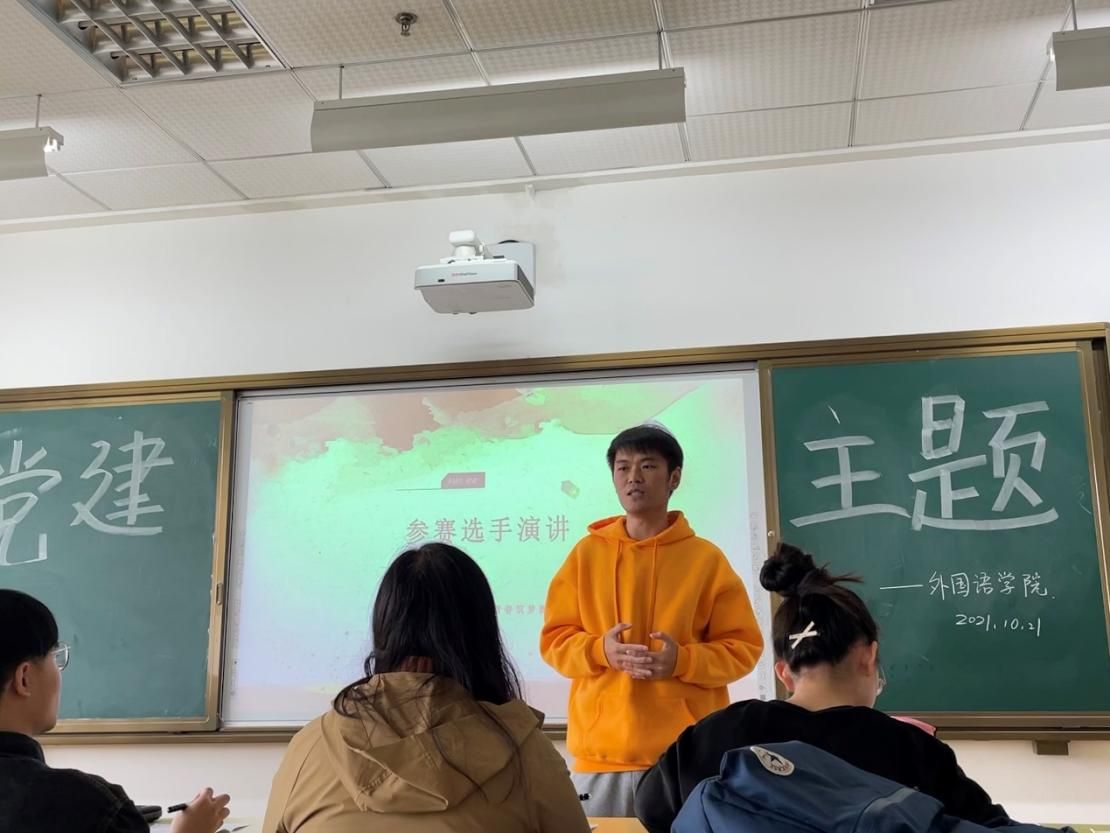 来自2021级的25名选手按照抽签顺序,依次上台演讲。外国语言学及应用语言学专业的唐贝同学以“不忘初心跟党走”为主题,强调初心是起点时心怀的承诺与信念,是困境时履行的责任与担当,不忘党的光荣历史,不忘党的根本宗旨,不忘党的传统本色;国别与区域研究专业的陈炫宇同学在《奋斗百年路 启航新征程》的演讲中回顾了党的百年奋斗历程,表达了对党在新征程上不断开拓新篇章的坚定信心,并呼吁广大新时代青年勠力同心、为中华民族伟大复兴中国梦的实现努力奋斗;法商笔译的江鹏同学向大家分享了在澳大利亚作交换生的故事,在国外勇发中国声音,讲好中国故事,并深深体会到祖国的强大。作为一名入党积极分子,他希望自己也能学习身边的榜样,为祖国做出贡献。最终,江鹏以出色的表现赢得评委和同学们的一致好评,荣获本次比赛的一等奖。